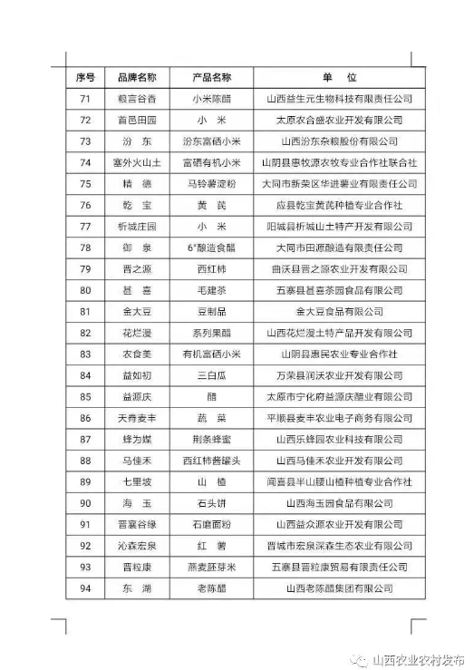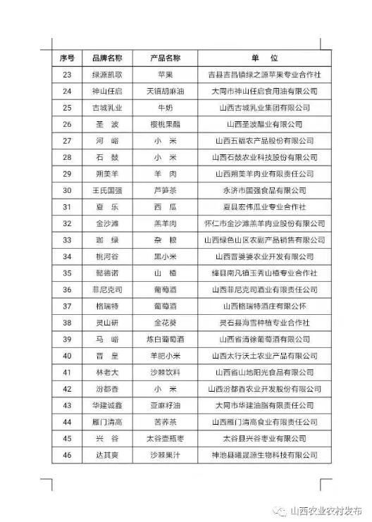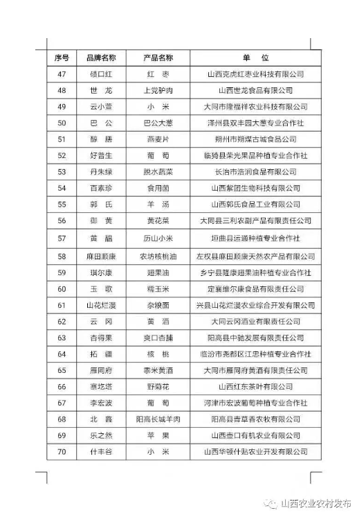 附件:擬入選2021年山西特優(yōu)農(nóng)產(chǎn)品品牌目錄庫(kù)名單