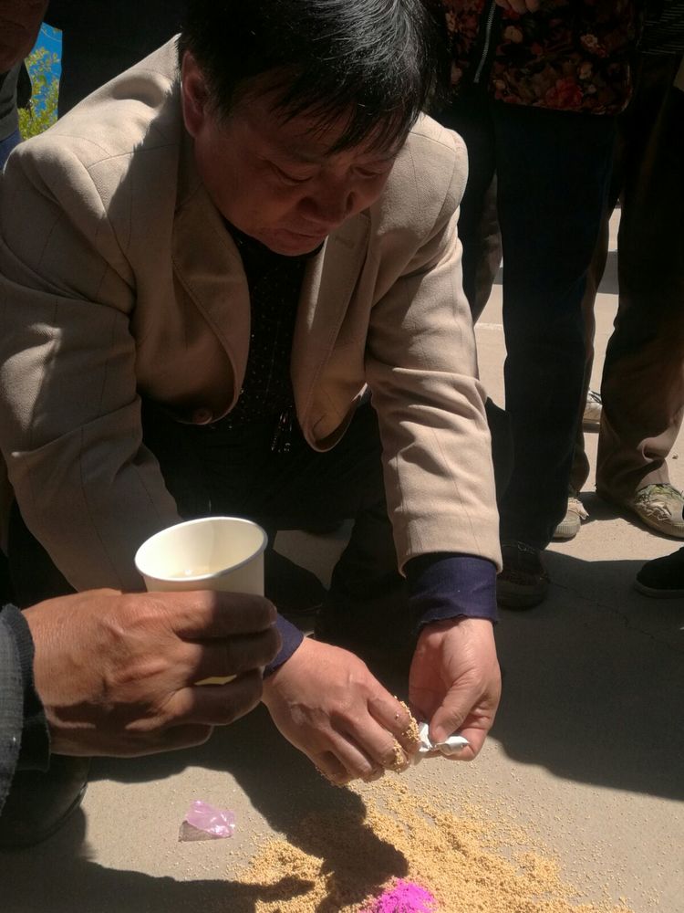 專家為農(nóng)戶現(xiàn)場進(jìn)行拌種技術(shù)示范指導(dǎo)