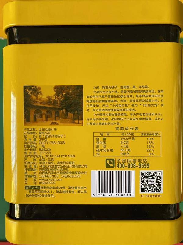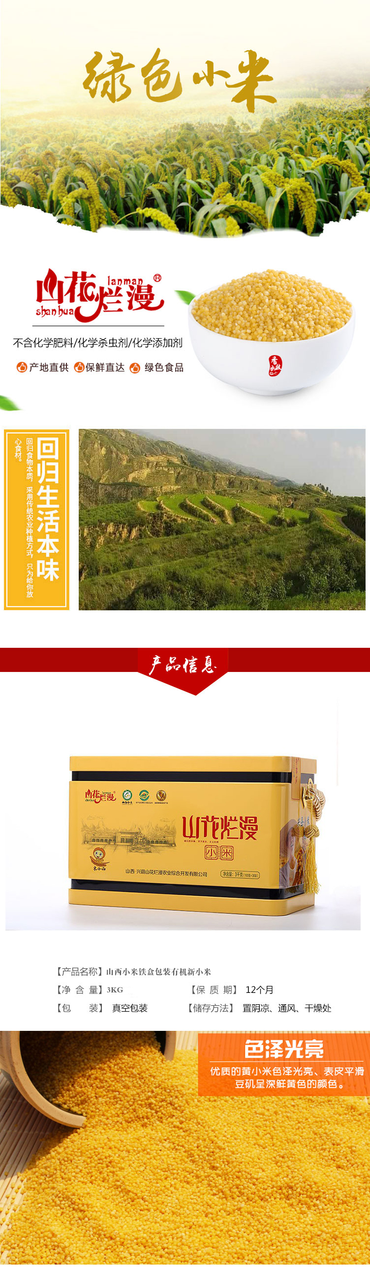 山花爛漫有機(jī)小米鐵盒 禮 盒 3kg 充氮保鮮
